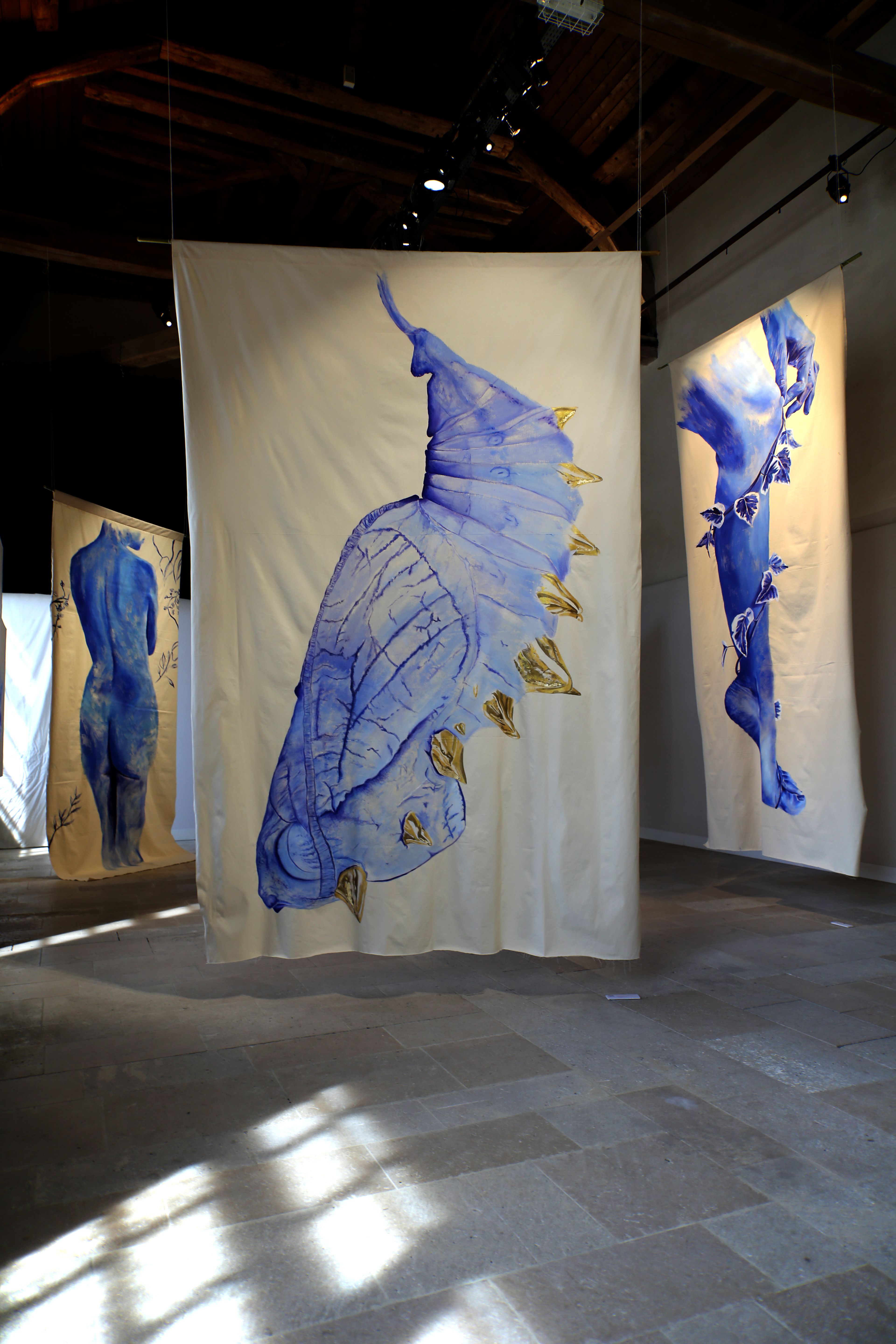 Un effort constant - 2025. Peinture acrylique et feuille d'or sur toile de coton brut. 215 x 320 cm